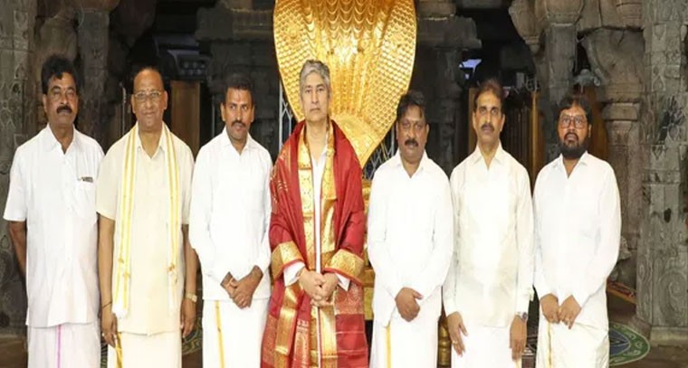 ఎపి హైకోర్టు ప్రధాన న్యాయమూర్తి జస్టిస్ ధీరజ్సింగ్ ఠాకూర్ శనివారం తిరుమల శ్రీవేంకటేశ్వర స్వామివారిని దర్శించుకున్నారు. హైకోర్టు ప్రధాన న్యాయమూర్తికి టీటీడీ జెఈవో వీరబ్రహ్మం స్వాగతం పలికి దర్శన ఏర్పాట్లు చేశారు. స్వామివారి దర్శనానంతరం ఆలయంలోని రంగనాయకుల మండపంలో వేద పండితులు వేదాశీర్వచనం చేశారు. అనంతరం తీర్థప్రసాదాలు, శ్రీవారి చిత్రపటం అందించారు.