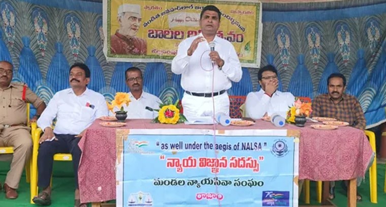 జాతీయ బాలల దినోత్సవం సందర్భంగా రాజాం పట్టణంలోని డోలపేట జడ్పీ హైస్కూల్ ప్రాంగణంలో మండల సీనియర్ సివిల్ జడ్జి ఎం. బాబు అధ్యక్షతన మంగళవారం న్యాయ అవగాహన సదస్సు నిర్వహించారు. ఈ సందర్భంగా విద్యార్థులకు విద్యా హక్కు, నైతిక విలువలు, రాజ్యాంగం యొక్క ప్రాముఖ్యత, జాతీయ జెండా, జాతీయ గీతం, నల్సా బాలల సంరక్షణ వంటి వాటిపై అవగాహన కల్పించారు. విద్యార్థులు తల్లిదండ్రుల ఆశయాలను నెరవేర్చాలన్నారు.