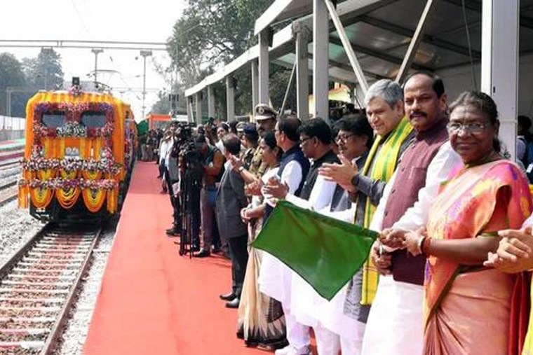ఒడిశాలోని గిరిజన ప్రాంతమైన బాదంపహార్ మరియు రాయంగ్పూర్లో రెండు ఎక్స్ప్రెస్ రైళ్లతో సహా మూడు రైళ్లను అధ్యక్షుడు ద్రౌపది ముర్ము మంగళవారం జెండా ఊపి ప్రారంభించారు. ప్రెసిడెంట్ ముర్ము కూడా ఆమె జన్మస్థలానికి సమీపంలోని రాయరంగపూర్ పట్టణానికి ఒక రైలులో ప్రారంభ యాత్రను చేపట్టారు. ప్రెసిడెంట్ ముర్ము మూడు రైళ్లను జెండా ఊపి ప్రారంభించిన బాదంపహార్ రైల్వే స్టేషన్కు ఇంతకుముందు మెము రైళ్లు మాత్రమే సేవలు అందించాయని రైల్వే అధికారులు తెలిపారు. రాష్ట్రపతి ముర్ము తన ప్రసంగంలో గిరిజన వర్గాల అభివృద్ధికి ప్రభుత్వం అనేక చర్యలు తీసుకుంటోందని ప్రశంసించారు.గిరిజన యువత ప్రభుత్వ పథకాలను సద్వినియోగం చేసుకోవాలని ఆమె కోరారు.