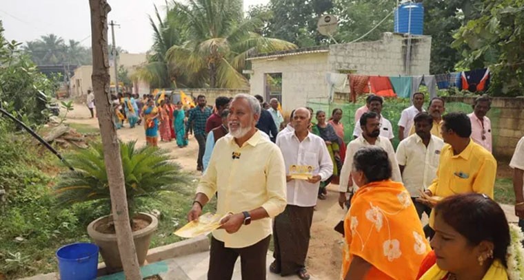 తిరుపతి రూరల్ మండలం, గాంధీపురం పంచాయితీ శ్రీనగర్ కాలనీ ఆపిల్ కేఫ్ వీధి నందు చంద్రగిరి నియోజకవర్గ టీడీపీ ఎమ్మెల్యే అభ్యర్థి పులివర్తి నాని మీ ఇంటి వద్దకు మీ పులివర్తి నాని కార్యక్రమం చేపట్టారు. టీడీపీ జనసేన నాయకులు, కార్యకర్తలు స్వాగతం పలికారు. మహిళలు హారతులు పట్టి స్వాగతం పలుకుతున్నారు. పులివర్తి నాని సమస్యలు సేకరిస్తూ. భరోసా కల్పించారు.