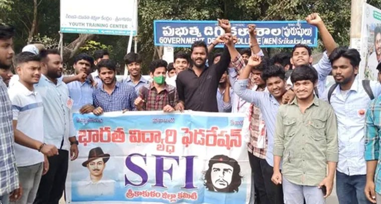 భారత విద్యార్థి ఫెడరేషన్ (ఎస్ఎఫ్ఐ) ఆధ్వర్యంలో శ్రీకాకుళం నగరంలో మంగళవారం ధర్నా నిర్వహించారు. ఈ సదర్భంగా ఎస్ఎఫ్ఐ జిల్లా అధ్యక్ష కార్యదర్శులు చందు, హరీష్ మాట్లాడుతూ ప్రభుత్వ డిగ్రీ కళాశాలలో పెంచిన స్పెషల్ ఫీజులు వెంటనే రద్దు చేయాలన్నారు. విద్య ఓపెన్ యాప్ ద్వారా ఫీజులు కట్టడాన్ని ఆపాలని డిమాండ్ చేశారు. ఈ కార్యక్రమంలో విద్యార్థులు పాల్గొన్నారు.