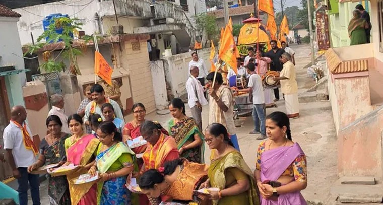 అయోధ్య నుంచి వచ్చిన శ్రీరాముని అక్షింతలను పెనుమంట్ర గ్రామంలో ఘనంగా ఊరేగింపు నిర్వహించారు. కొద్ది రోజలుగా స్థానిక పాత రామాలయంలో భద్రపరచి ఉంచిన అక్షింతలను బుధవారం గ్రామానికి చెందిన నల్లిమిల్లి రామిరెడ్డి దంపతులు, ఇతర భక్తుల ఆధ్వర్యంలో శాస్త్రోత్తంగా పూజలు నిర్వహించిన అనంతరం గ్రామంలో ఊరేగింపుగా తీసుకొని వెళ్ళి ఇళ్ల వద్ద అక్షింతలను పంచి పెట్టారు.