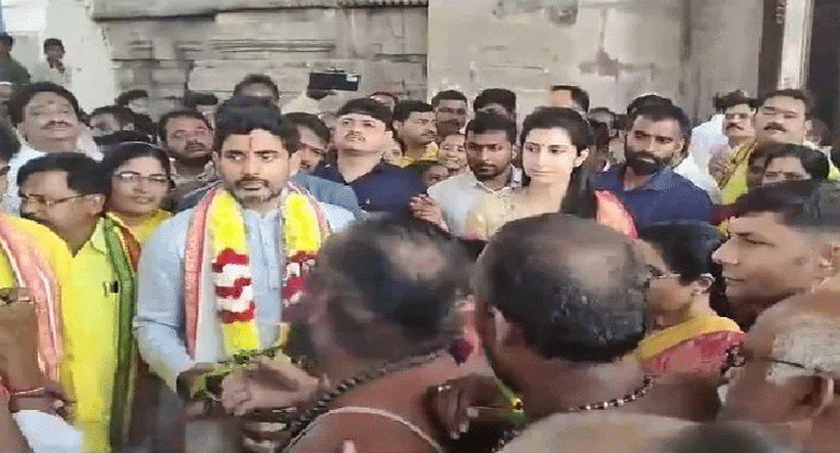 మంగళగిరిలోని ప్రముఖ ఆలయాలను టీడీపీ జాతీయ ప్రధాన కార్యదర్శి నారా లోకేశ్ కుటుంబసమేతంగా సందర్శించారు. ఈ ఉదయం తల్లి భువనేశ్వరి, భార్య బ్రాహ్మణి, తనయుడు దేవాన్ష్తో కలిసి నారా లోకేశ్ మంగళగిరిలోని ప్రముఖ దేవాలయాల్లో పూజలు నిర్వహించారు. ముందుగా మంగళగిరి శ్రీ లక్ష్మీనరసింహస్వామి ఆలయంలో ప్రదక్షిణలు చేశారు. పండితుల వేదమంత్రోచ్ఛారణల మధ్య స్వామివారికి కిరీటం అలంకరించి, చెంచులక్ష్మి అమ్మవారికి పట్టువస్త్రాలు సమర్పించారు. శివాలయంలో భక్తిశ్రద్ధలతో పూజలుచేశారు. అనంతరం పానకాల లక్ష్మీనరసింహస్వామి మెట్లపూజ చేశారు. మెట్ల మార్గంలో వెళ్లి పానకాల స్వామిని దర్శించుకున్నారు. కొండపైన ఉన్న రాజ్యలక్ష్మి అమ్మవారిని దర్శించుకున్నారు. రాజ్యలక్ష్మీ అమ్మవారి సన్నిధిలో పూజలు చేసి, పట్టువస్త్రాలు సమర్పించి, వేదపండితుల ఆశీర్వచనం అందుకున్నారు.