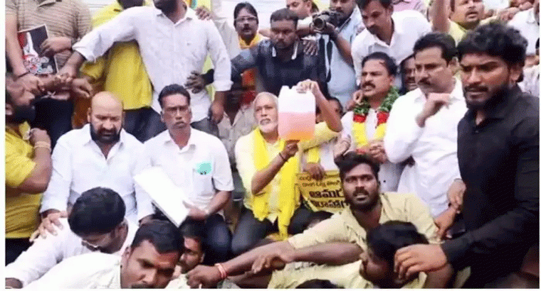 ఈ క్రమంలో పలువురు అధికార పార్టీ నేతలు దళితులకు ఓటు హక్కు కల్పించాలంటూ అక్కడకు చేరుకొని ప్లకార్డులతో నిరసన వ్యక్తం చేశారు. ఒకేసారి రెండు పార్టీలకు చెందిన నేతలు ధర్నాకు దిగడంతో ఉద్రిక్త పరిస్థితులు నెలకున్నాయి. దీంతో పెద్ద ఎత్తున పోలీసులు అక్కడికి చేరుకుని టీడీపీ, వైఎస్ఆర్సీపీ నేతలను అరెస్టు చేశారు. ఈ అరెస్టును నిరసిస్తూ పులివర్తి నాని ఒంటిపై పెట్రోల్ పోసుకొని ఆత్మహత్యాయత్నానికి ప్రయత్నించారు. వెంటనే స్పందించిన పోలీసులు దీక్షను భగ్నం చేసి ఆయనను అరెస్ట్ చేశారు. ఆర్డీవో స్పందించి బోగస్ ఓట్లను రద్దు చేసేంత వరకు దీక్ష విరమించబోయేది లేదని ఆయన తెగేసి చెప్పారు. ఓటర్ల జాబితాపై ఇంత నిర్లక్ష్యమేంటని? గత 7 నెలలుగా పోరాడుతున్నా పట్టించుకోవడం లేదని ఆరోపించారు.