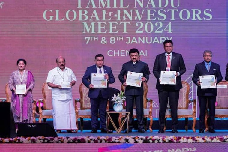 గ్లోబల్ ఇన్వెస్టర్స్ మీట్ 2024 సందర్భంగా తమిళనాడు రాష్ట్రానికి రూ.6 లక్షల కోట్లకు పైగా పెట్టుబడులు వస్తాయంటూ పలు కంపెనీలు వాగ్దానాలు చేశాయని తమిళనాడు ముఖ్యమంత్రి ఎంకే స్టాలిన్ సోమవారం తెలిపారు. రాష్ట్ర ప్రభుత్వం నిర్వహించిన ఈ కార్యక్రమంలో రూ.6.64 లక్షల పెట్టుబడులు వచ్చాయి కోటి, రాష్ట్రంలో 26.9 లక్షల ఉద్యోగాలు వస్తాయని అంచనా వేస్తున్నట్లు సిఎం చెప్పారు. 6.6 లక్షల కోట్ల విలువైన అవగాహన ఒప్పందం (ఎంఓయూలు)పై సంతకాలు జరిగాయని, రాష్ట్ర చరిత్రలో రికార్డు స్థాయిలో పెట్టుబడులు రావడం ఇదేనని సమ్మిట్లో సీఎం స్టాలిన్ తన ప్రసంగంలో ప్రకటించారు. ప్రపంచ పెట్టుబడిదారులకు తొలి ఓడరేవుగా తమిళనాడు మారాలని ఆకాంక్షిస్తున్నామని, దక్షిణాసియాలో అగ్రగామి రాష్ట్రంగా ఎదగాలని లక్ష్యంగా పెట్టుకుందని ఆయన పేర్కొన్నారు.