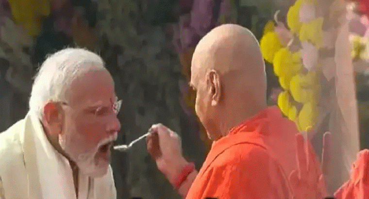 పూజలో ఉపయోగించిన పాలతో చేసిన పానీయం ‘చరణామృత్’ను ప్రధాని మోదీకి తాగించారు రామ జన్మభూమి తీర్థ క్షేత్ర ట్రస్ట్ సభ్యుడు గోవింద్ దేవ్ గిరి మహారాజ్. అనంతరం ప్రత్యేక అనుష్ఠానం పాటించినందుకు మోదీని అభినందించారు. జనవరి 12న మహారాష్ట్రలోని నాసిక్ ధామ్లోని పంచవటిలో (కాలారామ్ ఆలయం) ప్రధాని మోదీ ఉపవాస దీక్ష ప్రారంభించారు. కేవలం దుప్పటి మాత్రమే వేసుకొని నేలపై నిద్రించారు. కొబ్బరి నీళ్లు మాత్రమే తాగారు. అనుష్ఠానంలో భాగంగా పాటించే నియమాల మేరకు సూర్యోదయానికి ముందే నిద్ర లేవడం, యోగా, ధ్యానం చేయడం లాంటివి ఆచరించారు. ‘ప్రాణ ప్రతిష్ఠ కార్యక్రమానికి ప్రజల తరఫున ప్రాతినిధ్యం వహించే అదృష్టం దేవుడు నాకిచ్చాడు. దీన్ని దృష్టిలో పెట్టుకొనే ప్రత్యేక అనుష్ఠానం పాటిస్తున్నా’ అని మోదీ పేర్కొన్నారు.