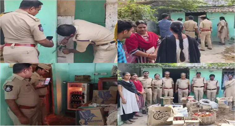 పోలీసులకు మిరియాల కాలనీలో ఒక ఇంట్లో భారీగా మద్యం నిల్వలు ఉన్నాయని పక్కాగా సమాచారం వచ్చింది. వెంటనే స్పెషల్ ఎంఫోర్స్మెంట్ బ్యూరో అధికారులు వెళ్లారు.. ఇంటికి తాళం వేసి ఉండటంతో అనుమానం వారికి మరింతగా పెరిగింది. వెంటనే సచివాలయ సిబ్బంది, వాలంటీర్ను అక్కడికి పిలిపించారు పోలీసులు. వారి సమక్షంలోనే తాళం పగలగొట్టి లోపలకు వెళ్లారు.. అక్కడ సీన్ షాకయ్యారు.