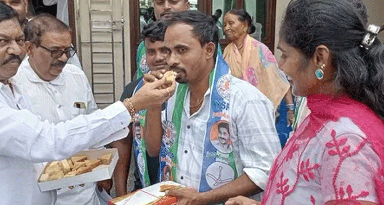 డిప్యూటీ సీఎం రాజన్న దొర ఇంటి వద్ద కొనసాగుతున్న సంబరాలు సాలూరు నియోజకవర్గం పరిధిలో ఉన్న మెంటాడ మండలం కుంటిని వలస పంచాయతీకి చెందిన యువత మంగళవారం సాలూరు డిప్యూటీ సీఎం నివాసం నకు వచ్చి డిప్యూటీ సీఎం రాజన్న దొర ను కలసి ఐదవ సారి ఎమ్మెల్యే అభ్యర్థిగా ప్రకటించినందుకు డిప్యూటీ సీఎం రాజన్న దొరకు స్వీట్ తెంపించి శుభాకాంక్షలు తెలియజేశారు.