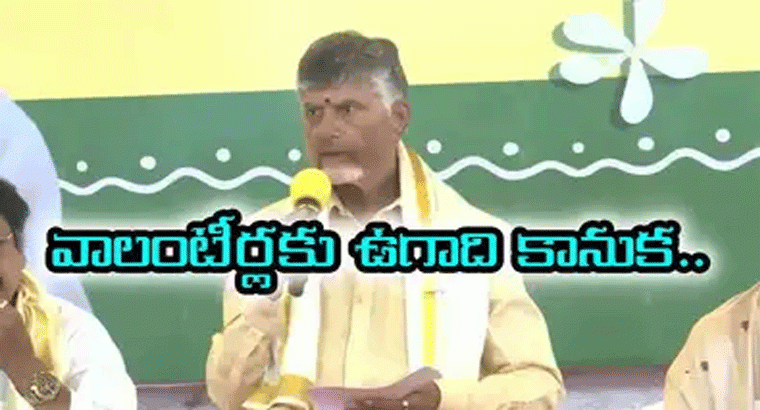 ఉగాది పర్వదినం సందర్భంగా వాలంటీర్లకు టీడీపీ అధినేత చంద్రబాబు నాయుడు గుడ్ న్యూస్ చెప్పారు. తాము అధికారంలోకి వస్తే వాలంటీర్లకు ఇస్తోన్న గౌరవ వేతనాన్ని రూ.10 వేలకు పెంచుతామని చంద్రబాబు హామీ ఇచ్చారు. మంగళగిరిలోని టీడీపీ ఆఫీసు.. ఎన్టీఆర్ భవన్లో నిర్వహించిన ఉగాది వేడుకల్లో పాల్గొన్న చంద్రబాబు నాయుడు.. నూతన తెలుగు సంవత్సరాది సందర్భంగా వాలంటీర్లకు ఈ శుభవార్తను ప్రకటించారు.