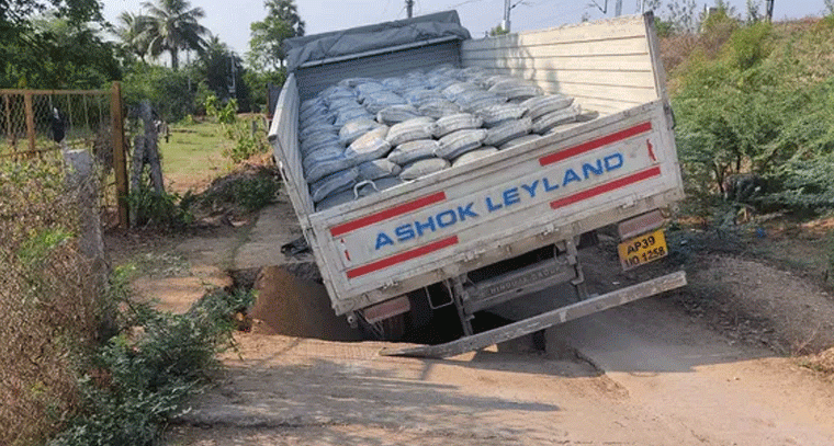 అన్నమయ్య జిల్లా నందలూరు మండలంలోని నాగిరెడ్డిపల్లి మేజర్ గ్రామ పంచాయతీలోని గొల్లపల్లి రోడ్డులో సిమెంట్ లోడుతో వెళ్తున్న లారీ వంటకాలవ తూము విరగడంతో లారీ ఇరుక్కుపోయిన ఘటన శుక్రవారం చోటు చేసుకుంది. లారీ రోడ్డుకు అడ్డంగా ఇరుక్కపోవడంతో గొల్లపల్లి గ్రామానికి వెళ్లే ప్రజలకు, రాకపోకలకు ఇబ్బందికరంగా మారింది. అధికారుల స్పందించి చర్యలు తీసుకోవాలని కోరారు.