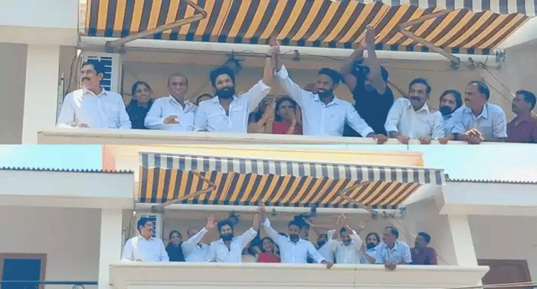 అభిమానులకు అభివాదం చేసేందుకు బన్నీ కారు సన్రూఫ్ నుంచి బయటికి వచ్చారు. అయితే ఆ సమయంలో కొంత మంది అభిమానులు కారుపైకి ఎక్కారు. బన్నీతో కరచాలనం చేసేందుకు ప్రయత్నించారు. అలా చేయొద్దని అభిమానులకు బన్నీ నచ్చజెప్పారు. ఇక అక్కడి నుంచి వేలాది మంది అభిమానుల మధ్య శిల్పా రవిచంద్రారెడ్డి ఇంటికి బన్నీ దంపతులు చేరుకున్నారు. శిల్పా రవిచంద్రారెడ్డి ఇంటి పైనుంచి అభిమానులకు అభివాదం చేశారు. అల్లు అర్జున్ భార్య స్నేహారెడ్డి సైతం అభిమానులకు అభివాదం చేశారు.