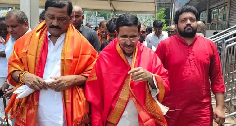 కలియుగ దైవం తిరుమల శ్రీ వెంకటేశ్వర స్వామి వారిని మాజీ మంత్రులు ఎన్డీఏ కూటమి భీమిలి &నెల్లూరు నగర ఎమ్మెల్యే అభ్యర్థులు గంట శ్రీనివాసరావు , నారయణ రాజంపేట జనసేన పార్టీ సమన్వయ కర్త అతికారి దినేష్ ఆదివారం దర్శించుకున్నారు. వారికి ఆలయ మర్యాదలతో స్వాగతం పలికి శాలువ కప్పి సన్మానించారు. స్వామివారికి ప్రత్యేక పూజలు నిర్వహించారు. కూటమి విజయం సాధించాలని దేవుని ప్రార్థించినట్లు తెలిపారు.
