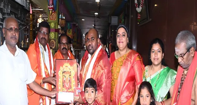 శ్రీ దుర్గామల్లేశ్వర స్వామివార్ల దేవస్థానం ఇంద్రకీలాద్రి పై వేంచేసి ఉన్న దుర్గమ్మ అమ్మవారి స్వర్ణ తాపడం పనుల నిమిత్తం నల్గొండకు చెందిన మేరుగు గోపాల్ యాదవ్ అనే భక్తుడు రూ. 1, 00, 000/-లను విరాళంగా అందజేశారు. ఈ మొత్తాన్ని ఆలయ ఈఈ కెవిఎస్ కోటేశ్వర రావుకు అందజేశారు ఆనంతరం వారికి అమ్మవారి దర్శనం కల్పించి వేదపండితులచే వేదాశీర్వచనం కల్పించి, ఆలయ అమ్మవారి ప్రసాదములు, శేష వస్త్రం మరియు చిత్రపటం అందజేశారు.