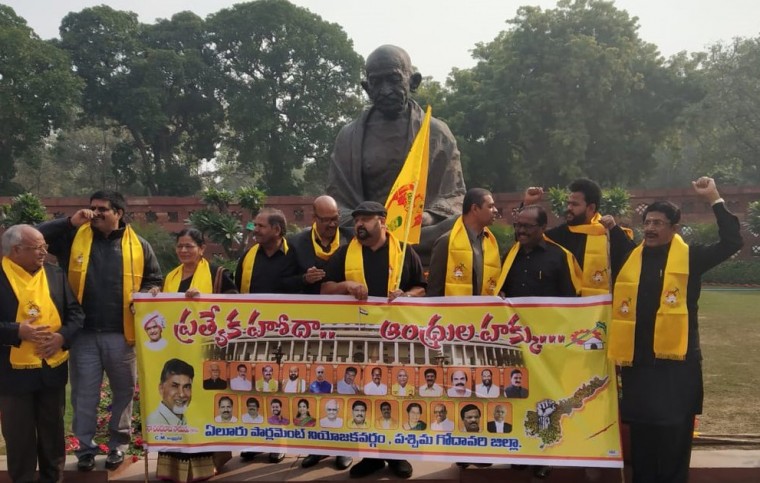 ఏపీకి కేంద్రం అన్యాయం చేసిందంటూ శుక్రవారం పార్లమెంట్ ఆవరణలో గాంధీ విగ్రహం వద్ద టీడీపీ ఎంపీలు ఆందోళనకు దిగారు. నల్ల దుస్తులతో టీడీపీ ఎంపీలు తమ నిరసనను వ్యక్తం చేశారు. విభజన హామీలు నెరవేర్చాలని ఎంపీలు డిమాండ్ చేశారు.