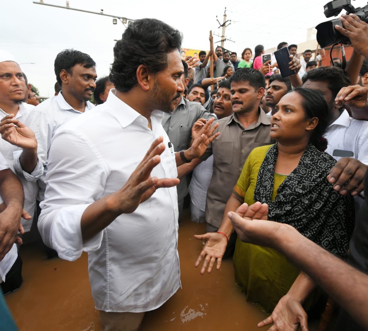 ఆంధ్ర ప్రదేశ్ మాజీ సీఎం జగన్ విజయవాడలో వరద ప్రభావిత ప్రాంతాల్లో పర్యటించడం మొదలుపెట్టారు. ఉదయం రిటైనింగ్ వాల్, సాయంత్రం ముంపు ప్రాంతాల్లో పర్యటించారు.విజయవాడలో మాజీ ముఖ్యమంత్రి వైఎస్ జగన్ పర్యటన చేశారు. వరద ముంపు ప్రాంతాల్లో తిరుగుతూ వరద బాధితులను పరామర్శించారు.జగన్తో స్థానికులు తమ బాధల్ని చెప్పుకున్నారు. మూడు రోజుల నుంచి ఇదే పరిస్థితి ఉందని.. వరద నీరు తగ్గడం లేదని బాధితులు జగన్ తో తమ గోడు వెళ్లబోసుకున్నారు.ప్రభుత్వం నుంచి అందుతున్న సాయం గురించి కూడా జగన్ మోహన్ రెడ్డి ఆరా తీశారు. బాధితులకు అందుతున్న సహాయక చర్యలు, తక్షణ సాయం కింద ఆహారం, నీరు గురించి ఆరా తీశారు.విజయవాడలో సింగ్ నగర్లో వైఎస్ జగన్ పర్యటించగా.. తమ బాధని జగన్ తో బాధితులు చెప్పుకున్నారు.వరద ప్రభావిత ప్రాంతాల్ని పరిశీలిస్తూ జగన్ ముందుకు సాగారు.