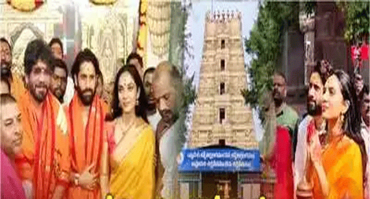 సినీ నటుడు అక్కినేని నాగార్జున ఫ్యామిలీ శ్రీశైలం మల్లన్న స్వామిని దర్శించుకుంది. ఇటీవల అక్కినేని నాగచైతన్య, శోభిత పెళ్లి జరిగిన సంగతి తెలిసిందే. ఈ నేపథ్యంలో నూతన వధూవరులు అక్కినేని నాగచైతన్య, శోభితతో కలిసి అక్కినేని కుటుంబం శ్రీశైలం మల్లన్నను దర్శించుకుంది. ఈ సందర్భంగా మహాద్వారం వద్ద ఆలయ అధికారులు వారికి సాదర స్వాగతం పలికారు. అనంతరం ఆలయంలో స్వామివారికి ప్రత్యేక పూజలు చేశారు. రుద్రాభిషేకం నిర్వహించారు. ఈ సందర్భంగా నూతన దంపతులకు అర్చకులు వేదాశీర్వచనం అందించారు.