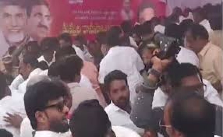 కాకినాడలో 'కుడా' చైర్మన్ ప్రమాణ స్వీకార కార్యక్రమంలో అపశ్రుతి చోటుచేసుకుంది. ప్రమాణ స్వీకార వేదిక ఒక్కసారిగా కూలిపోయింది. అయితే వేదిక ఎత్తు తక్కువగా ఉండడంతో ప్రమాదం తప్పింది. కుడా చైర్మన్ గా తుమ్మల బాబు ప్రమాణ స్వీకారం చేయడం కోసం ఈ కార్యక్రమం ఏర్పాటు చేశారు. వేదికపై టీడీపీ నేతలు యనమల రామకృష్ణుడు, నిమ్మకాయల చినరాజప్ప.... జనసేన నేతలు పంతం నానాజీ, హరిప్రసాద్ తదితరులు ఉన్నారు. అయితే, వేదిక పైకి ఎక్కువ మంది రావడంతో, వేదిక కుప్పకూలింది. యనమల తదితరులు కిందపడిపోయారు. దాంతో అక్కడ ఆందోళన నెలకొంది. ఎవరికీ గాయాలు కాకపోవడంతో అందరూ ఊపిరి పీల్చుకున్నారు. కిందపడిన నేతలను కార్యకర్తలు పైకి లేపారు. ఆ తర్వాత కుడా చైర్మన్ ప్రమాణ స్వీకార కార్యక్రమం కొనసాగింది.