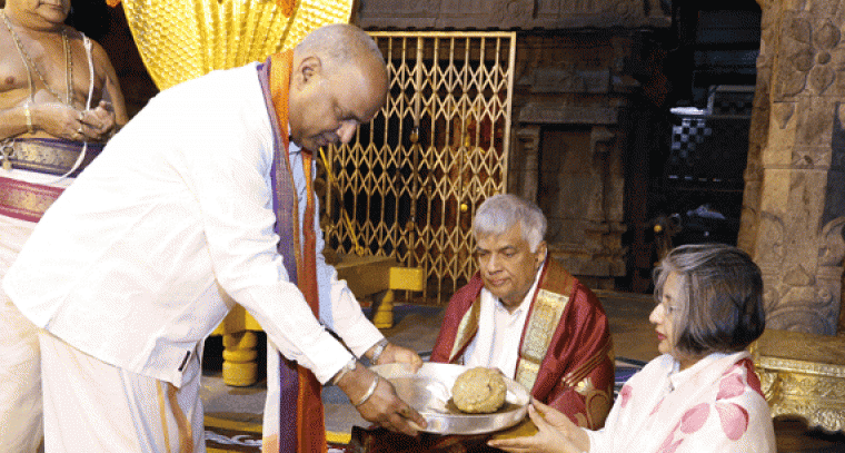 శ్రీలంక ప్రధాన మంత్రి గౌ|| శ్రీ రనీల్ విక్రమసింఘే తన సతీమణి ప్రొఫెసర్ మైత్రి విక్రమసింఘేతో కలిసి ఆదివారం ఉదయం సుప్రభాతసేవలో తిరుమల శ్రీవారిని దర్శించుకున్నారు. ఆలయం వద్దకు చేరుకున్న శ్రీలంక ప్రధాని దంపతులకు టిటిడి ఈవో శ్రీ అనిల్కుమార్ సింఘాల్, తిరుమల జెఈవో శ్రీ కె.ఎస్.శ్రీనివాసరాజు మహద్వారం వద్ద సంప్రదాయబద్ధంగా స్వాగతం పలికి దర్శన ఏర్పాట్లు చేశారు.