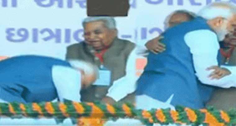 గుజరాత్లో రెండు రోజుల పర్యటనలో భాగంగా ప్రధాని మోదీ అన్నపూర్ణ మాత దేవాలయాన్ని సందర్శించారు. ఈ సందర్భంగానే అక్కడే ఏర్పాటు చేసిన ఓ కార్యక్రమంలో ఆయన పాల్గొన్నారు. సభలో పాల్గొన్న ప్రధాని గతంలో గుజరాత్ కు సీఎంగా పనిచేసిన కేశుబాయ్ పటేల్ కు పాదాభివందనం చేసి ఆశీర్వాదం తీసుకున్నారు. వెంటనే స్పందించిన కేశుబాయ్ మోదీని వెంటనే ఆలింగనం చేసుకున్నారు. కాగా ప్రధాని, మాజీ సీఎం కాళ్లు మొక్కిన వీడియో ఇప్పుడు సోషల్ మీడియాలో వైరల్ అయి చక్కర్లుకొడుతోంది.