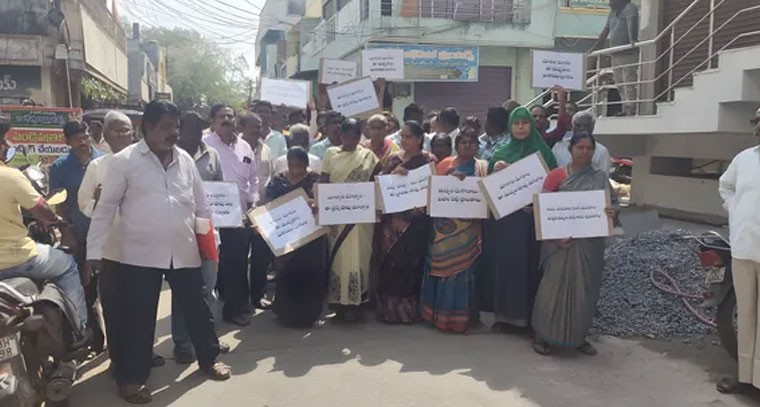 నందికొట్కూరు పట్టణం పాత బస్టాండ్ లోని తాలూకా ఆఫీస్ రోడ్డు లో ఏర్పాటు చేసిన మద్యం దుకాణాన్ని తొలగించాలని సీపీఐ ఆధ్వర్యంలో కాలనీ వాసులు శుక్రవారం స్థానిక ఎక్సేంజ్ పోలీస్ స్టేషన్ ముందు ధర్నా నిర్వహించారు. జనవాసం, రద్దీగా ఉండే ప్రాంతంలో మద్యం దుకాణాన్ని తొలగించి మరోచోటికి తరలించాలని సీపీఐ ఆధ్వర్యంలో కాలనీ వాసులు భారీ ర్యాలీగా బయలుదేరి మున్సిపల్ కమిషనర్ బేబీకి, తహసీల్దార్ కార్యాలయంలో, స్థానిక పోలీస్ స్టేషన్ లో వినతి పత్రాలు అందజేసారు.