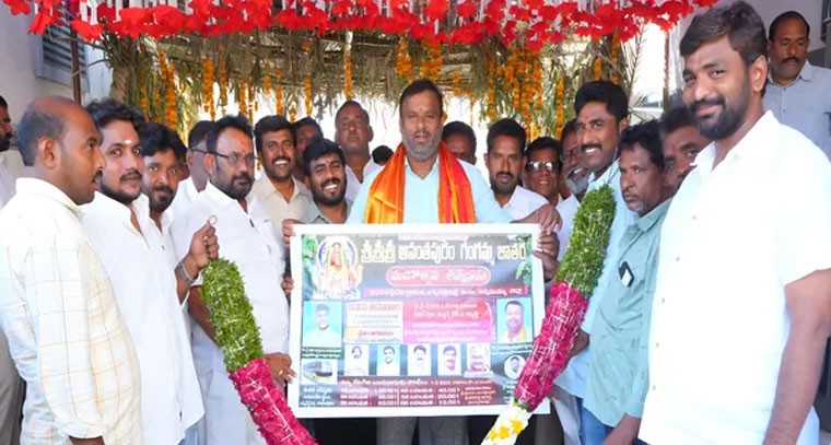 లక్కిరెడ్డిపల్లి మండలం, అనంతపురం గ్రామంలో మార్చి 1, 2 వ తేదీలలో జరిగే అనంతపురం గంగమ్మ జాతరకు హాజరుకావాలని మంత్రి రాంప్రసాద్ రెడ్డికి గంగమ్మ జాతర నిర్వాహకులు శనివారం మంత్రి క్యాంప్ కార్యాలయంలో ఆహ్వాన పత్రిక అందజేశారు. గంగమ్మ జాతరలో బండ లాగుడు పోటీలు, ఆర్కెస్ట్రా, చెక్కభజన వివిధ సాంస్కృతిక కార్యక్రమాలు నిర్వహించడం జరుగుతుందని తెలిపారు. ఈ కార్యక్రమాలకు మంత్రి తప్పక హాజరు కావాలని వారు కోరారు.