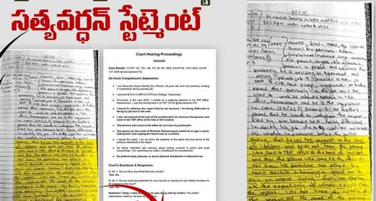 వైయస్ఆర్ కాంగ్రెస్ పార్టీ మంగళవారం సామాజిక మాధ్యమం ఎక్స్లో సత్యమేవ జయతే పేరుతో పోస్ట్ చేసింది. ‘గన్నవరం ఘటనలో పాపం ఎవరిది? సీఎం చంద్రబాబు కుట్రను బయటపెట్టిన సత్యవర్థన్ స్టేట్మెంట్’ అంటూ వాంగ్మూలం రిపోర్ట్ కాపీని ట్యాగ్ చేసింది. సత్యవర్థన్ స్టేట్మెంట్లో ఏమున్నదంటే...‘టీడీపీ ఆఫీసుపై దాడి చేసిన వాళ్లు ఎవరో నాకు స్పష్టంగా తెలియదు. కానీ.. ఒక రిపోర్ట్ తీసుకొచ్చి సుబ్రహ్మణ్యం నన్ను సంతకం చేయమని చెప్పాడు. నేను చేశాను.అందులో ఏముందో, ఎవరి పేర్లు ఉన్నాయో కూడా నాకు తెలియదు. కేసులు, కోర్టుల చుట్టూ నేను తిరుగుతుండటంతో మా కుటుంబ సభ్యులు కంగారు పడుతున్నారు’ అంటూ రాశారు. ఆధారాలతో కూడిన ఈ స్టేట్మెంట్ అందరినీ ఆలోచింపజేస్తోంది. వంశీ అరెస్టు లక్ష్యంగా చంద్రబాబు సర్కార్ పన్నిన కుట్రలు, గన్నవరం కేసులో కట్టుకథలు, కల్పితాలు, తప్పుడు సాక్ష్యాలు, అక్రమ అరెస్టులకు 2025 ఫిబ్రవరి 10న కోర్టు ముందు సత్యవర్థన్ ఇచ్చిన స్టేట్మెంటే నిదర్శనమని వైయస్ఆర్ కాంగ్రెస్ పార్టీ ఎక్స్లో పేర్కొంది.ఘటన జరిగిన సమయంలో తాను అక్కడ లేనని, టీడీపీ నాయకుడు బచ్చుల సుబ్రహ్మణ్యం ఈ కేసులో సాక్షిగా తన వద్ద సంతకం తీసుకున్నాడని సత్యవర్థన్ వాంగ్మూలంలో పేర్కొన్నట్లు తెలిపింది.