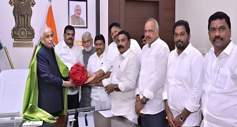 వైసీపీ జాతీయ అధ్యక్షులు, ఆంధ్రప్రదేశ్ మాజీ ముఖ్యమంత్రి వైయస్ జగన్మోహన్ రెడ్డికి భద్రత కల్పించడంలో పోలీసులు విఫలమయ్యారని గురువారం రాజ్ భవన్ కు వెళ్లి గవర్నర్ అబ్దుల్ నజీర్ ను వైసీపీ నాయకులు కలసి వినతిపత్రాన్ని సమర్పించారు. మాజీ ముఖ్యమంత్రిగా వైఎఎస్ జగన్ కు జడ్ ప్లస్ సెక్యూరిటీ ఉంటుందని, అయితే ఆయనకు ఎక్కడకు వెళ్లినా భద్రత కల్పించాల్సిన బాధ్యత పోలీసులదేనని తెలిపారు. జగన్ భద్రతపై తమకు ఆందోళనగా ఉందని, రక్షణ కల్పించేలా ప్రభుత్వాన్ని ఆదేశించాలని వైసీపీ నేతలు గవర్నర్ ను కోరారు. జగన్ పర్యటనలో అనేక భద్రతా వైఫల్యాలు కనిపించాయని వారు తెలిపారు.శాసనమండలి విపక్షనేత బొత్స సత్యనారాయణ, గుంటూరు నగర మేయర్ కావటి మనోహర్, మాజీ మంత్రులు అంబటి, మేరుగ, వెల్లంపల్లి, కారుమూరు, ఎమ్మెల్సీలు అప్పిరెడ్డి, అరుణ్ కుమార్ పాల్గొన్నారు.