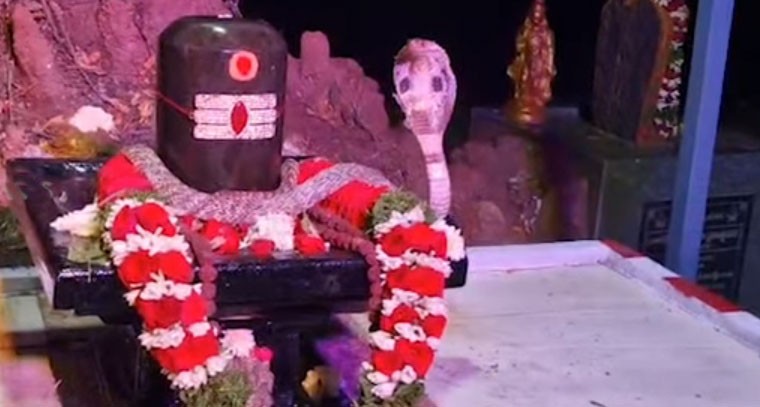 శివరాత్రి పర్వదినాల్లో అద్భుతం.. మనుబోలులో శివలింగంపై నాగరాజు పడగవిప్పి అలానే చూస్తుండిపోయింది.. పూజారి మాత్రం శివస్త్రోత్రం పఠిస్తూ ఉండిపోయారు..మనుబోలు చెర్లోపల్లి రైల్వే గేట్ సమీపాన వెలసి ఉన్న విశ్వనాథ స్వామి వారి యొక్క దేవస్థానం వద్ద ఆ అద్భుతం జరిగింది. పూజారి శ్రీనివాసులు నిద్రిస్తున్న సమయంలో నాగరాజు పక్క నుంచి వెళ్లి పెద్ద శబ్దం చేయటంతో ఉలిక్కిపడి లేచిన పూజారి ఆ తర్వాత నాగరాజు శివలింగంపై పడగ విప్పడం చూసి స్తోత్రం చదవడం మొదలు పెట్టాడు.