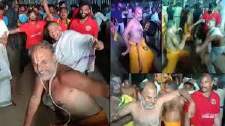 సాధారణంగా ఆలయాల్లో పనిచేసే అర్చకులంటే ఏదో సంప్రదాయబద్ధంగా, ఆచారాలు పాటిస్తూ ఓ టైపులో ఉంటారని అనుకుంటాం. కానీ శ్రీకాకుళం జిల్లా మందస గ్రామంలోని శ్రీ వాసుదేవ పెరుమాళ్ ఆలయ అర్చకులు మాత్రం డిఫరెంట్. వాసుదేవ పెరుమాళ్ స్వామివారిబ్రహ్మోత్సవాల సందర్భంగా ఆలయ అర్చకులు డీజే పాటలకు బ్రేక్ డ్యాన్స్ చేసి చూపరులను విస్మయానికి గురిచేశారు. స్వామివారి ఊరేగింపులో అర్చకులు ఎంతో ఉత్సాహంగా డ్యాన్పులు చేస్తూ ఎంజాయ్ చేశారు. వారిలో ఒకరు పాములా మెలికలు తిరుగుతూ షేక్ డ్యాన్స్ ను కూడా మిక్స్ చేశారు. గ్రామంలోని కుర్రకారుతో పోటీ పడుతూ ఆ అర్చకులు తమ డ్యాన్స్ టాలెంట్ ను ప్రదర్శించడం విశేషం. ఇన్నాళ్లు తమలో ఉన్న కళను అందరికీ చూపించాలన్న కసితో వాళ్లు డ్యాన్స్ చేసినట్టుగా అనిపిస్తోంది. దీనికి సంబంధించిన వీడియో సామాజిక మాధ్యమాల్లో వైరల్ అవుతోంది.