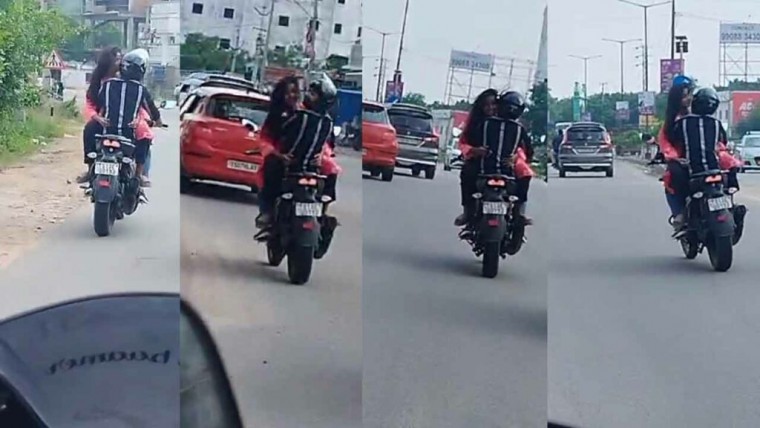 బెంగళూరులో నడిరోడ్డుపై ప్రేమికుల జంట రెచ్చిపోయింది. ఓ యువకుడు బైక్ నడుపుతుండగా యువతి ముందువైపు నుంచి ఫ్యూయల్ ట్యాంక్పై అతడిని గట్టిగా కౌగిలించుకొని కూర్చుంది. బెంగళూరులోని సర్జాపుర మెయిన్ రోడ్డులో ఓ ప్రేమ జంట ఇలా రొమాన్స్ చేసుకుంటూ కనిపించడంతో ఓ వ్యక్తి తన మొబైల్లో వీడియో తీసి సోషల్ మీడియాలో పెట్టాడు. దీంతో వీడియో నెట్టింట వైరల్గా మారింది. వీడియో చూసిన నెటిజన్లు ప్రేమికులపై ఆగ్రహం వ్యక్తం చేస్తున్నారు. ఇలాంటి వారిని అసలు క్షమించకూడదని, ఇది పూర్తిగా సిగ్గులేనితనమని, పైగా హెల్మెట్ లేకుండా రద్దీగా ఉండే రోడ్డుపై ఇలా నిర్లక్ష్యంగా ప్రయాణిస్తున్న ఆ జంటపై పోలీసులు కఠిన చర్యలు తీసుకోవాలని డిమాండ్ చేస్తున్నారు.