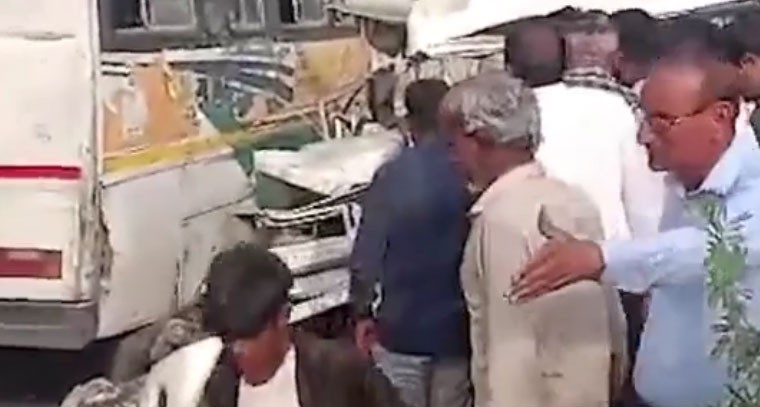 గుజరాత్లోని బనాస్కాంఠా జిల్లాలో శుక్రవారం ఘోర రోడ్డు ప్రమాదం చోటుచేసుకుంది. సిరోహి వైపు వెళ్తున్న బస్సును రాంగ్ రూట్లో వచ్చిన బోలేరో కారు ఢీకొట్టింది. ఈ ప్రమాదంలో కారులో ఉన్న దంపతులు, ఇద్దరు కొడుకులు, మరో వ్యక్తి అక్కడిక్కడే మృతి చెందారు. మరో నలుగురికి తీవ్ర గాయలయ్యాయి. ఈ ప్రమాదంలో బోలేరో పూర్తిగా ధ్వంసం అయింది. సమాచారం అందుకున్న పోలీసులు ఘటనా స్థలానికి చేరుకుని మృతదేహాలను ఆసుపత్రికి తరలిస్తున్నారు.