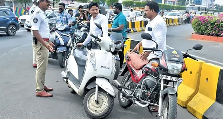విజయవాడలో శనివారం నుంచి కొత్త ట్రాఫిక్ రూల్స్ అమలులోకి రానున్నాయి. బైక్పై ప్రయాణించే ఇద్దరూ హెల్మెట్ పెట్టుకోవాలి. లేకపోతే ఇద్దరికీ జరిమానా. డ్రైవింగ్ లైసెన్స్ మరిచిపోతే రూ.10 వేలు ఫైన్ ఓవర్ స్పీడ్, రేసింగ్కు పాల్పడితే కఠిన శిక్ష తప్పదు. రవాణా వాహనాల్లో ప్రయాణికులను ఎక్కిస్తే ఒక్కొక్కరికి రూ.200 చొప్పున జరిమానా. విధి నిర్వహణలో ఉన్న పోలీసులు, రవాణా శాఖ అధికారులపై వాగ్వాదానికి దిగితే చట్టపరమైన చర్యలు