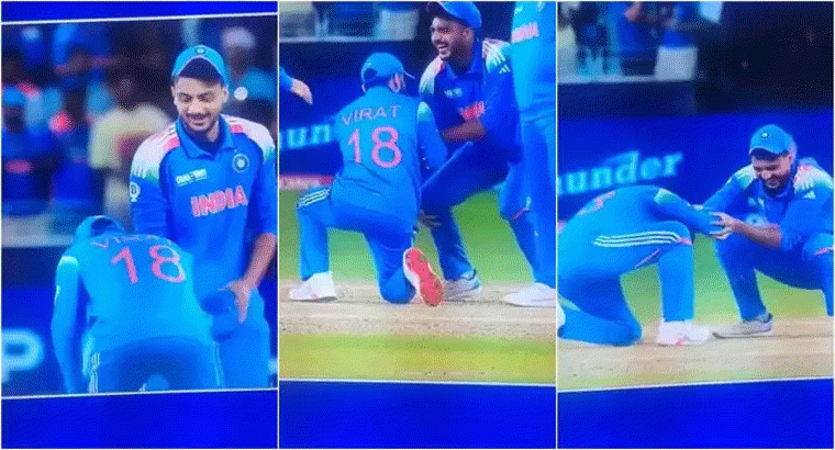 ఆఖరి బంతికి విలియమ్సన్ వికెట్ తీసిన అక్షర్ పటేల్ని తోటి ఆటగాళ్లు అభినందించారు. విరాట్ కోహ్లి నేరుగా వచ్చి అక్షర్ పటేల్ కాళ్లు టచ్ చేశాడు. విలియమ్సన్ని అవుట్ చేసినందుకు థాంక్స్ అంటూ అక్షర్ పాదాలు పట్టుకున్నాడు. అక్షర్ పటేల్ వద్దని వారించినా ఒప్పుకోకుండా పట్టుకున్నాడు. అయితే, ఇదంతా చాలా సరదాగనే జరిగింది. ఫన్నీ అయినప్పటికీ విరాట్ కోహ్లి అక్షర్ కాళ్లు టచ్ చేయడం గొప్ప విషయమే.