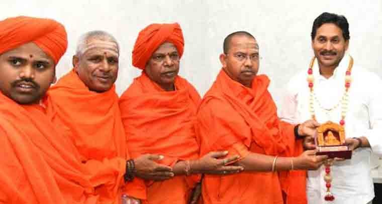 వైయస్ఆర్ కాంగ్రెస్ పార్టీ అధినేత, మాజీ సీఎం వైయస్ జగన్మోహన్రెడ్డిని కర్ణాటకలోని విజయనగర జిల్లా నందీపుర పీఠాధిపతులు గురువారం కలిశారు. ఏప్రిల్ 30న నందీపురలో ప్రపంచంలోనే ఎత్తయిన 108 అడుగుల శ్రీఅర్ధనారీశ్వరస్వామి విగ్రహానికి భూమిపూజ కార్యక్రమం నిర్వహించనున్నారు. ఈ కార్యక్రమానికి హాజరు కావాలని తాడేపల్లిలోని క్యాంపు కార్యాలయంలో వైయస జగన్కు పీఠాధిపతులు ఆహ్వానపత్రిక అందజేశారు. పీఠాధిపతులు డాక్టర్ మహేశ్వర స్వామీజీ (నందీపుర పుణ్యక్షేత్రం), పంచాక్షరి శివాచార్య స్వామీజీ (హీరే మఠం, బెన్నిహళ్ళి), జడేశ్వర తాత (శక్తి పీఠం, వీరాపుర), శ్రీ కృష్ణపాద స్వామీజీ (భుజంగ నగర్, సండూర్) ఆహ్వానపత్రిక అందజేసిన వారిలో ఉన్నారు. కార్యక్రమంలో వైయస్ఆర్సీపీ పార్లమెంటరీ పార్టీ నేత వైవీ సుబ్బారెడ్డి, ఎమ్మెల్సీ డాక్టర్ ఎ.మధుసూదన్, రామచైతన్య (ఫౌండర్, అర్ధనారీశ్వర ఫౌండేషన్), వీరేష్ ఆచార్య (కో-ఫౌండర్, అర్ధనారీశ్వర ఫౌండేషన్) పాల్గొన్నారు.