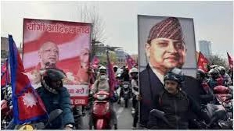 నేపాల్లో రాచరికానికి మద్దతుగా నిర్వహించిన ర్యాలీలో ఉత్తరప్రదేశ్ ముఖ్యమంత్రి యోగి ఆదిత్యనాథ్ చిత్రాలను ప్రదర్శించారు. ఇందుకు కారణం, యోగి నేపాల్లో రాచరికానికి బలమైన మద్దతుదారు. నేపాల్ మాజీ రాజు జ్ఞానేంద్ర షాతో యోగికి మంచి సంబంధాలు ఉన్నాయి. ఇటీవల భారత్లో పర్యటించిన జ్ఞానేంద్ర షా ఉత్తరప్రదేశ్ ముఖ్యమంత్రితో సమావేశమయ్యారు.నేపాల్లో రాచరికానికి మద్దతిచ్చే రాష్ట్రీయ ప్రజాతంత్ర పార్టీ భారీ ర్యాలీ నిర్వహించింది. నేపాల్లో రాచరిక పాలనను పునరుద్ధరించాలని డిమాండ్ చేశారు. ఈ సమయంలో జ్ఞానేంద్ర షాతో పాటు యోగి ఆదిత్యనాథ్ చిత్రాలను ప్రదర్శించారు.ఇతర దేశాల నేతల చిత్రపటాలను ప్రదర్శించడంపై విమర్శలు రావడంతో రాష్ట్రీయ ప్రజాతంత్ర పార్టీ ప్రతినిధి వివరణ ఇచ్చారు. తమ ఉద్యమానికి చెడ్డపేరు తీసుకురావడానికి ప్రధాని కేపీ ఓలి వర్గం ఈ ర్యాలీలో యోగి ఆదిత్యనాథ్ ఫొటోలను ప్రదర్శించిందని ఆరోపించారు. ప్రధాని ఓలి ముఖ్య సలహాదారు సూచనల మేరకు ర్యాలీలో యోగి చిత్రాన్ని ప్రదర్శించారని పేర్కొన్నారు. ఈ ఆరోపణలను ప్రధాని ఓలి ముఖ్య సలహాదారు బిష్ణు రిమాల్ ఖండించారు.