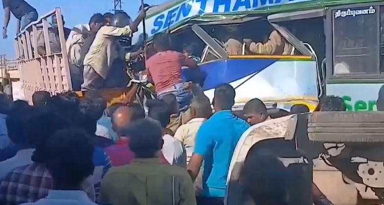 తమిళనాడులో ఘోర రోడ్డు ప్రమాదం సంభవించింది. మధురై జిల్లా పరమకుడి నుండి మధురై వెళ్తున్న ప్రైవేట్ బస్సు.. విరగనూర్లో ఆగి ఉన్న లారీని ఢీకొట్టింది. ఈ ప్రమాదంలో ఒక మహిళ మృతిచెందగా, 10 మందికి తీవ్రగాయాలు అయ్యాయి. ఘటనా స్థలానికి చేరుకున్న పోలీసులు కేసు నమోదు చేసుకొని, గాయపడ్డవారిని వెంటనే ఆస్పత్రికి తరలించారు. ఘటనకు సంబంధించి పూర్తి సమాచారం తెలియాల్సి ఉంది.