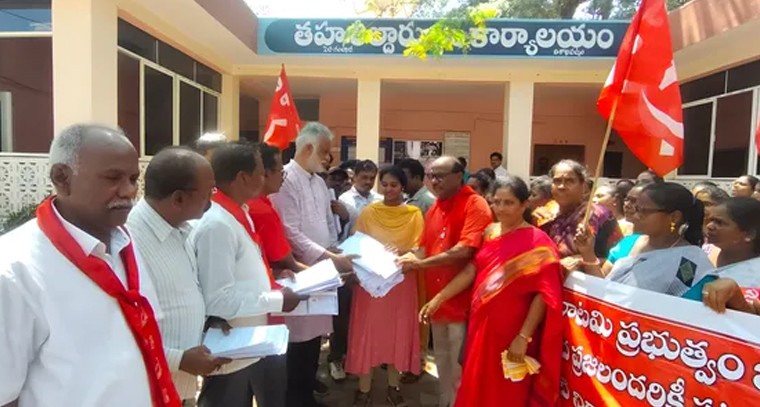 అర్హులైన పేదలకు ఇళ్ల స్థలాలు కేటాయింపులో రాష్ట్రం లోని కూటమి ప్రభుత్వం వైఫల్యం చెందిందని సిపిఐ రాష్ట్ర సహాయ కార్యదర్శి జె. వి. సత్యనారాయణ మూర్తి ఆరోపించారు. అర్హులైన పేద లందరికీ ఇళ్ల స్థలాలు ఇవ్వాలని సిపిఐ ఆధ్వర్యం లో పేదల నుంచి సేకరించిన దరఖాస్తులను గాజువాకలో పెద గంట్యాడ తహసీల్దార్ కు గురువారం అంద జేశారు. అనంతరం ఆయన మాట్లాడుతూ కూటమి ప్రభుత్వం ఇచ్చిన హామీలను నిలబెట్టుకోలేక పోతుందన్నారు.