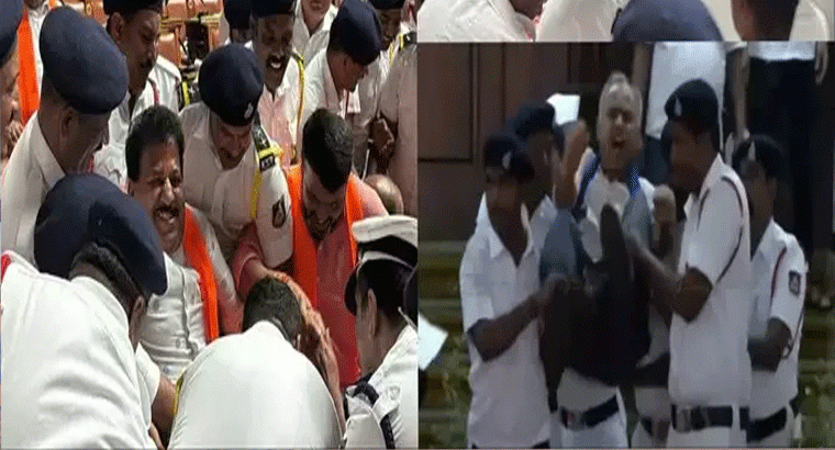 దీంతో సభా కార్యక్రమాలకు అడ్డు పడిన 18 మంది బీజేపీ ఎమ్మెల్యేలపై సస్పెన్షన్ విధిస్తూ.. స్పీకర్ తీర్మానం చేశారు. 6 నెలల పాటు వారిని సస్పెండ్ చేస్తున్నట్లు వివరించారు. దీంతో వారిని వెంటనే మార్షల్స్ బలంవంతంగా బయటకు పంపించారు. సస్పెన్షన్ ఉత్తర్వుల ప్రకారం.. ఈ 18 మంది ఎమ్మెల్యేలు అసెంబ్లీ హాల్, లాబీ, గ్యాలరీలోకి రాకూడదు. వారు ఏ స్టాండింగ్ కమిటీ సమావేశంలో కూడా పాల్గొనకూడదు. అసెంబ్లీ ఎజెండాలో వారి పేర్లతో ఎలాంటి అంశం లిస్ట్ కాకూడదు. అంతేకాకుండా ఈ 6 నెలల పాటు వారికి రోజువారీ జీత భత్యాలు కూడా పొందలేరు.