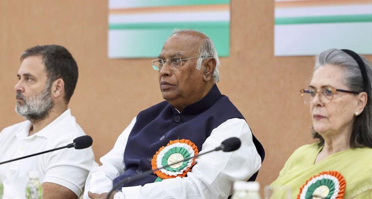 జాతీయ వీరులపై బిజెపి-ఆర్ఎస్ఎస్ "చక్కగా ప్రణాళికాబద్ధమైన కుట్ర" చేస్తోందని ఆరోపిస్తూ, కాంగ్రెస్ అధ్యక్షుడు మల్లికార్జున్ ఖర్గే మంగళవారం (ఏప్రిల్ 8, 2025) సర్దార్ వల్లభాయ్ పటేల్ భావజాలం ఆర్ఎస్ఎస్ ఆలోచనలకు విరుద్ధంగా ఉందని మరియు స్వాతంత్ర్య పోరాటంలో "ఎటువంటి సహకారం లేని" ఆ సంస్థ నేడు తన వారసత్వాన్ని చెప్పుకోవడం హాస్యాస్పదంగా ఉందని అన్నారు. సర్దార్ పటేల్ స్మారక చిహ్నంలో జరిగిన విస్తరించిన కాంగ్రెస్ వర్కింగ్ కమిటీ సమావేశంలో తన ప్రారంభ ప్రసంగంలో, శ్రీ ఖర్గే మాట్లాడుతూ, నేడు మత విభజనకు పాల్పడటం ద్వారా దేశంలోని ప్రాథమిక సమస్యల నుండి దృష్టి మళ్లించబడుతుందని అన్నారు.వారు ఒక నాణానికి రెండు వైపుల వారనేది వాస్తవం. వారి మధ్య సుహృద్భావపూర్వక సంబంధాలు ఉన్నాయనేందుకు దాఖలాలుగా అనేక ఘటనలు, పత్రాలు ఉన్నాయి’ అని ఖర్గే స్పష్టం చేశారు. ‘వారిద్దరి మధ్య దాదాపు రోజూ ఉత్తరప్రత్యుత్తరాలు సాగుతుండేవి. నెహ్రూజీ అన్ని విషయాలపై ఆయన సలహా తీసుకుంటుండేవారు. పటేల్ సాహెబ్ అంటే నెహ్రూజీకి అపార గౌరవం ఉంది. ఆయన ఏదైనా సలహా తీసుకోవలసి వస్తే స్వయంగా పటేల్జీ ఇంటికి వెళుతుండేవారు. పటేల్జీ సౌకర్యార్థం సిడబ్ల్యుసి సమావేశాలను ఆయన నివాసంలో నిర్వహించారు’ అని ఖర్గే తెలియజేశారు. పటేల్ సిద్ధాంతం ఆర్ఎస్ఎస్ భావాలకు విరుద్ధమైనదని, ఆయన ఆ సంస్థను నిషేధించారు కూడా అని ఖర్గే స్పష్టం చేశారు.