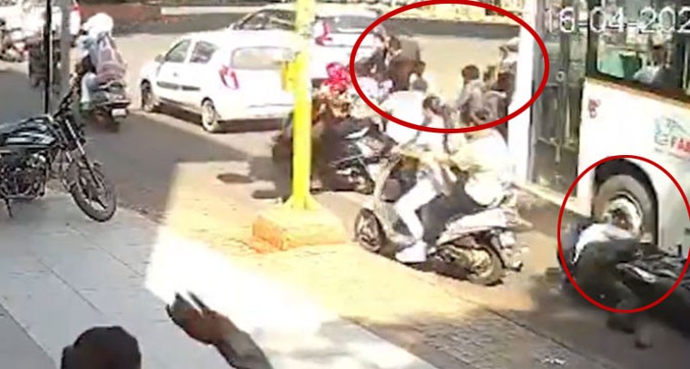 గుజరాత్లోని రాజ్కోట్లో ఘోర ప్రమాదం చోటుచేసుకుంది. ఓ బస్సు సిగ్నల్స్ దగ్గర కూడా ఆగకుండా దూసుకెళ్లింది. ఈ ప్రమాదంలో బస్సు రోడ్డు మీద ఉన్నవారిని ఢీకొట్టింది. దీంతో నలుగురు అక్కడికక్కడే మృతి చెందగా.. పలువురికి గాయాలయ్యాయి. గాయపడిన వారిని ఆసుపత్రికి తరలించారు. స్థానికుల సమాచారం ప్రకారం బస్సుకు బ్రేక్స్ ఫెయిల్ అయినట్టు తెలుస్తోంది. వైరల్ అయిన సీసీటీవీ ఫుటేజ్లో, సిగ్నల్ ఆకుపచ్చగా మారిన తర్వాత బస్సు దారిలో 5-6 ద్విచక్ర వాహనాలను ఢీకొట్టింది.నివేదికల ప్రకారం, కోపంతో ఉన్న ప్రేక్షకులు బస్సును ధ్వంసం చేయడం ప్రారంభించారు. డ్రైవర్ మద్యం మత్తులో ఉన్నాడని స్థానికులు సూచించారు.పోలీసులు సంఘటనా స్థలానికి చేరుకుని దర్యాప్తు ప్రారంభించారు.ముఖ్యంగా, గుజరాత్లో ప్రమాదాలు పెరుగుతున్నాయి. వడోదర, అహ్మదాబాద్ మరియు గాంధీనగర్లలో హిట్-అండ్-రన్ ప్రమాదాలు తరచుగా జరుగుతున్నాయి.