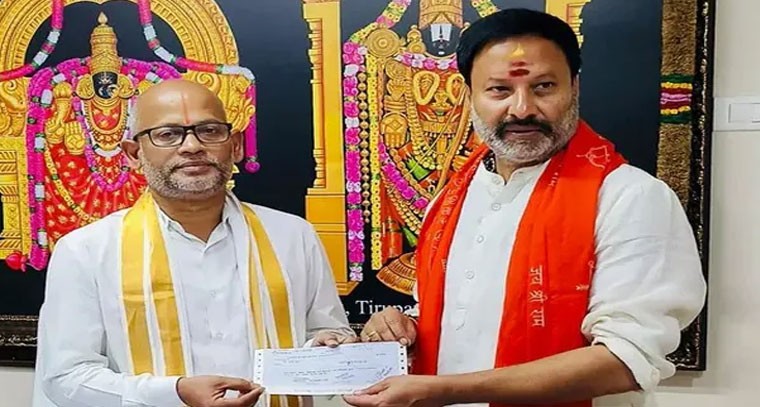 తిరుమల తిరుపతి దేవస్థానం పరిధిలోని సర్వ శ్రేయాస్ ట్రస్టుకు బెంగళూరుకు చెందిన భక్తుడు రూ.10 లక్షల విరాళం ప్రకటించారు. ఈ మేరకు విరాళానికి సంబంధించిన డీడీని భక్తుడు బీఎంకే నగేశ్.. బీజేపీ నాయకుడు, బోర్డు సభ్యుడు భానుప్రకాశ్రెడ్డికి అందజేశారు. తిరుమలలోని అదనపు ఈవో కార్యాలయంలో ఈ డీడీని అదనపు ఈవో సి.హెచ్.వెంకయ్య చౌదరికి అందించారు.