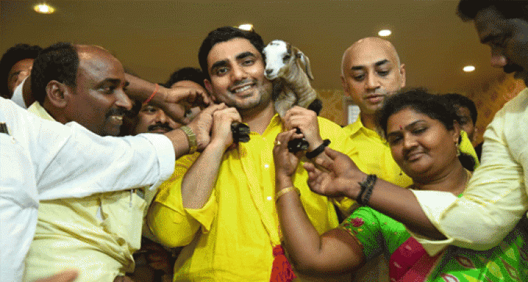 తెలుగు దేశం పార్టీ ఐటీ శాఖమంత్రి నారా లోకేశ్ శుక్రవారం తాను పోటీచేసే నియోజకవర్గం మంగళగిరిలో మాట్లాడారు. తన వద్ద పీఏ వ్యవస్థ ఉండదని, అందరి ఫోన్ కాల్స్కు, మెసేజ్లకు తాను సమాధానం ఇస్తానని లోకేశ్ అన్నారు. కార్యకర్తలు, ప్రజలకు తాను ఎల్లప్పుడూ అందుబాటులో ఉంటానని, కొందరు నేతలు కులాల ప్రస్తావన తెస్తున్నారని, కొందరు రేపు మతాన్ని, ప్రాంతాన్ని కూడా తీసుకొస్తారని విమర్శించారు. మన కులం మంగళగిరి, మన మతం మంగళగిరి, మన ప్రాంతం మంగళగిరి అని అన్నారు. పార్లమెంటులో మోదీ పేరు ప్రస్తావించాలంటేనే చాలామంది భయపడతారని, అలాంటిది తెదేపా ఎంపీ గల్లా జయదేవ్ లోక్సభలో మిస్టర్ ప్రైమ్మినిస్టర్ అని మాట్లాడారని గుర్తుచేశారు. మచ్చలేని కుటుంబాలపై కుట్రలు పన్ని కేసులు పెడుతున్నారని లోకేశ్ ఆరోపించారు.