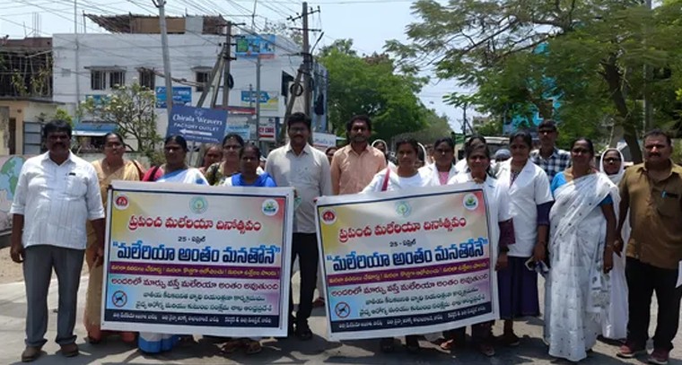 చీరాల పట్టణంలో ప్రపంచ మలేరియా దినోత్సవం సందర్బంగా శుక్రవారం పీపీపీ యూనిట్ వైద్యాధికారి డాక్టర్ యాకోబు, డాక్టర్ వీర బ్రహ్మం ఆధ్వర్యంగా మలేరియా అవగాహన ర్యాలీ నిర్వహించారు. వారు మాట్లాడుతూ మలేరియా అంతం మన పంతం, మలేరియా నివారణ మనందరి అనే నినాదం తొ ప్రజలకు అవగాహనా చేయాలనీ మలేరియా గురించి అందరికి తెలపాలన్నారు. రాబోయి రోజుల్లో వర్షాకాలంలో మలేరియా రాకుండా జాగ్రత్తలు తీసుకోవాలని అన్నారు.