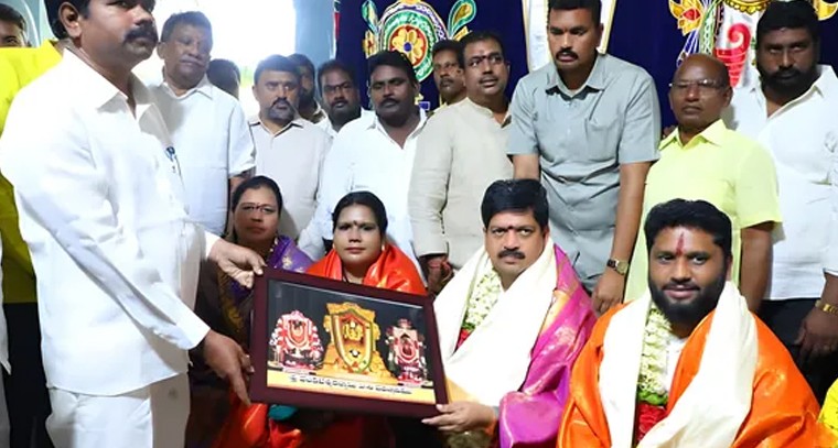ఏలూరు జిల్లా, ద్వారకాతిరుమలలోని అలివేలు మంగ సమేత శ్రీ వెంకటేశ్వర స్వామి వారిని రాష్ట్ర ఎక్సైజ్ శాఖ మంత్రి కొల్లు రవీంద్ర ఆదివారం దర్శించుకున్నారు. ఈ సందర్భంగా ఆలయ ప్రధాన అర్చకులు ప్రత్యేక పూజలు నిర్వహించి వేద ఆశీర్వచనలతో పాటు స్వామి వారి చిత్రపటాన్నిఅందజేశారు. ఈ కార్యక్రమంలో గోపాలపురం శాసనసభ్యులు మద్దిపాటి వెంకట రాజు, రాష్ట్ర మాజీ మంత్రి పీతల సుజాత తదితరులు ఉన్నారు.