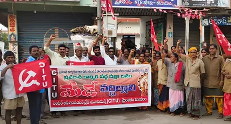 మైలవరం గ్రామపంచాయతీ కార్యాలయం వద్ద అంతర్జాతీయ కార్మికుల దినోత్సవం మే డే సందర్భంగా జెండా ఆవిష్కరించడం జరిగింది. సిఐటియు మండల కార్యదర్శి సుధాకర్ మాట్లాడుతూ, కార్మికుల విశిష్టత గురించి కొనియాడారు. అంతర్జాతీయ కార్మికుల దినోత్సవం కార్మికులతో జరుపుకోవడం అనేది సంతోషకరంగా ఉందన్నారు. ప్రతి ఒక్క కార్మికుడు నేడు కార్యక్రమాలు జరుపుకోవాలని అన్నారు. ఈ కార్యక్రమంలో పారిశుద్ధ్య కార్మికులు పాల్గొన్నారు.