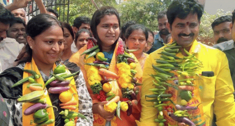 తెదేపా పశ్చిమ నియోజకవర్గం అభ్యర్థిని షబానా ఖాతూన్ సోమవారం ఉదయం 28వ డివిజన్ పరిధిలో ప్రచారం నిర్వహించారు. ఈ సందర్భంగా రైతుబజార్ వద్దకు రాగానే అక్కడ ఉన్న రైతులు, పార్టీ అభిమానులు కూరగాయలతో కూర్చిన దండను వేసి తమ అభిమానాన్ని చాటుకున్నారు.ఈ కార్యక్రమంలో స్థానిక కార్పొరేటర్ యేదుపాటి రామయ్య, కేశినేని శ్వేత తదితరులు పాల్గొన్నారు.