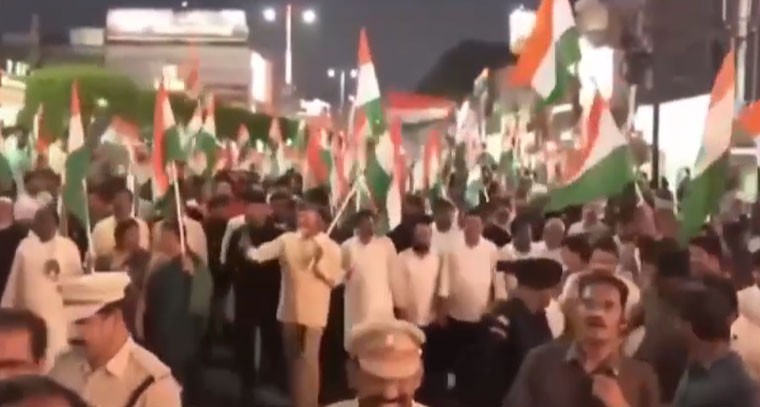 ఆపరేషన్ సిందూర్ విజయవంతం చేసిన సైనిక దళాలకు సంఘీభావంగా శుక్రవారం సీఎం చంద్రబాబు నేతృత్వంలో కూటమి నేతలు తిరంగా ర్యాలీ ఘనంగా నిర్వహించారు. విజయవాడ ఇందిరాగాంధీ మున్సిపల్ స్టేడియం నుంచి బెంజిసర్కిల్ వరకు ర్యాలీ సాగింది త్రివిధ దళాలకు మద్దతుగా నిర్వహించిన ఈ తిరంగా ర్యాలీలో వేలాది మంది ప్రజలు స్వచ్ఛందంగా పాల్గొన్నారు.ఆపరేషన్ సిందూర్లో భారత సైన్యం పాకిస్థాన్, పాక్ ఆక్రమిత కాశ్మీర్లోని ఉగ్రవాద స్థావరాలను ధ్వంసం చేసిన విషయం తెలిసిందే. ఆపరేషన్ సిందూర్ సక్సెస్ అయిన సందర్భంగా బీజేపీ చేపట్టిన దేశవ్యాప్త 'తిరంగ యాత్ర' లో భాగంగా నేడు ఏపీలో భారీ యాత్ర ఘనంగా నిర్వహించారు. సుమారు 5000 మంది పాల్గొన్న ఈ యాత్రలో జాతీయ జెండాలు చేపట్టి, దేశభక్తి నినాదాలు ఇస్తూ.. భారత సైనికులకు మద్ధతు తెలిపారు