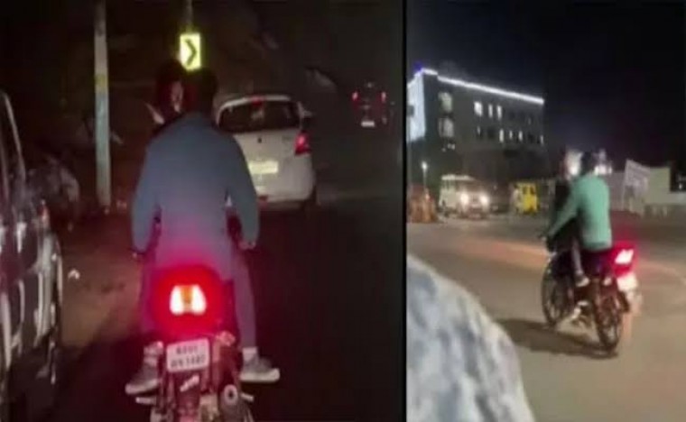 విజయవాడలో ఓ ప్రేమజంట బైక్ పై ప్రయాణిస్తూ రొమాన్స్ చేసింది