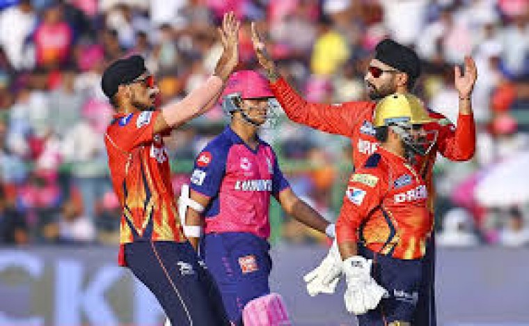 ఐపీఎల్ లో ఆదివారం హోరాహోరీగా సాగిన మ్యాచ్లో పంజాబ్ కింగ్స్ అద్భుత విజయాన్ని అందుకుంది. జైపూర్లోని సవాయ్ మాన్సింగ్ స్టేడియం వేదికగా రాజస్థాన్ రాయల్స్తో జరిగిన లీగ్ మ్యాచ్లో పంజాబ్ 10 పరుగుల స్వల్ప తేడాతో గెలుపొందింది. చివరి ఓవర్ వరకు ఉత్కంఠభరితంగా సాగిన ఈ పోరులో రాజస్థాన్ జట్టు పోరాడి ఓడింది. 220 పరుగుల లక్ష్యఛేదనలో ఆ జట్టు 20 ఓవర్లలో 7 వికెట్లకు 209 పరుగులు చేసి ఓటమిపాలైంది. యువ ఆటగాళ్లు యశస్వి జైస్వాల్, వైభవ్ సూర్యవంశీ మెరుపులు, ధ్రువ్ జురెల్ పోరాటం వృథా అయ్యాయి. పంజాబ్ బౌలర్లు కీలక సమయంలో రాణించి జట్టుకు విజయాన్ని అందించారు.టాస్ గెలిచి బ్యాటింగ్ ఎంచుకున్న పంజాబ్ కింగ్స్ పంజాబ్ కింగ్స్ నిర్ణీత 20 ఓవర్లలో 5 వికెట్ల నష్టానికి 219 పరుగుల భారీ స్కోరు చేసింది. మొదట్లో పంజాబ్ కు ఆశించిన ఆరంభం దక్కలేదు. ప్రియాంశ్ ఆర్య (9), ప్రభ్సిమ్రన్ సింగ్ (21), మిచెల్ ఓవెన్ (0) స్వల్ప స్కోర్లకే వెనుదిరిగారు. ఈ దశలో క్రీజులోకి వచ్చిన నెహాల్ వధేరా, కెప్టెన్ శ్రేయస్ అయ్యర్ (30) ఇన్నింగ్స్ను చక్కదిద్దారు. వధేరా దూకుడుగా ఆడుతూ 37 బంతుల్లో 5 ఫోర్లు, 5 సిక్సర్లతో 70 పరుగులు చేసి స్కోరు బోర్డును పరుగులు పెట్టించాడు. ఆ తర్వాత శశాంక్ సింగ్ ఆకాశమే హద్దుగా చెలరేగాడు. కేవలం 30 బంతుల్లోనే 5 ఫోర్లు, 3 సిక్సర్లతో అజేయంగా 59 పరుగులు సాధించాడు. చివర్లో అజ్మతుల్లా ఒమర్జాయ్ (9 బంతుల్లో 21 నాటౌట్; 3 ఫోర్లు, 1 సిక్సర్) మెరుపు ఇన్నింగ్స్ ఆడారు. రాజస్థాన్ బౌలర్లలో తుషార్ దేశ్పాండే రెండు వికెట్లు పడగొట్టగా, క్వెనా మఫాక, రియాన్ పరాగ్, ఆకాశ్ మధ్వాల్ తలో వికెట్ దక్కించుకున్నారు.అనంతరం 220 పరుగుల భారీ లక్ష్యంతో బరిలోకి దిగిన రాజస్థాన్ రాయల్స్కు ఓపెనర్లు యశస్వి జైస్వాల్, వైభవ్ సూర్యవంశీ అదిరిపోయే ఆరంభాన్నిచ్చారు. ముఖ్యంగా వైభవ్ సూర్యవంశీ కేవలం 15 బంతుల్లోనే 4 ఫోర్లు, 4 సిక్సర్లతో 40 పరుగులు చేసి పంజాబ్ బౌలర్లపై విరుచుకుపడ్డాడు. మరోవైపు యశస్వి జైస్వాల్ కూడా తనదైన శైలిలో ఆడుతూ 25 బంతుల్లో 9 ఫోర్లు, 1 సిక్సర్తో 50 పరుగులు చేశాడు. వీరిద్దరూ తొలి వికెట్కు కేవలం 4.5 ఓవర్లలోనే 76 పరుగులు జోడించి బలమైన పునాది వేశారు. అయితే, పంజాబ్ బౌలర్ హర్ప్రీత్ బ్రార్ ఒకే ఓవర్లో ఇద్దరినీ పెవిలియన్ చేర్చి రాజస్థాన్ను దెబ్బకొట్టాడు. ఆ తర్వాత వచ్చిన కెప్టెన్ సంజూ శాంసన్ (20), రియాన్ పరాగ్ (13) ఎక్కువసేపు క్రీజులో నిలవలేకపోయారు.ఈ దశలో ధ్రువ్ జురెల్ (31 బంతుల్లో 53; 3 ఫోర్లు, 4 సిక్సర్లు) ఒంటరి పోరాటం చేశాడు. షిమ్రాన్ హెట్మైర్ (11) నిరాశపరిచాడు. జురెల్ చివరి వరకు పోరాడినప్పటికీ, అవసరమైన రన్రేట్ భారీగా పెరిగిపోవడంతో రాజస్థాన్పై ఒత్తిడి పెరిగింది. పంజాబ్ బౌలర్లలో హర్ప్రీత్ బ్రార్ కేవలం 22 పరుగులిచ్చి 3 కీలక వికెట్లు పడగొట్టి మ్యాచ్ను 