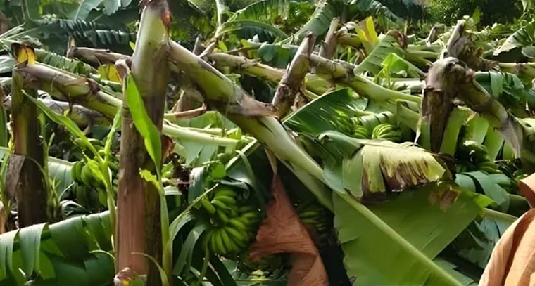 తంబళ్లపల్లె మండలంలోని పలు గ్రామాల్లో రెండు రోజులుగా కురిసిన గాలివానకు రెండు ఎకరాల్లో అరటి తోట చెట్టులు నేల రాలిపోయి రైతులకు తీవ్ర నష్టాన్నికలిగించాయి అని మంగళవారం రైతులు ఆవేదన వ్యక్తం చేశారు. తంబళ్లపల్లె మండల కేంద్రానికి చెందిన పలు రైతులు కలసి గ్రామానికి సమీపంలో రెండు ఎకరాల్లో అరటి సాగు చేశామని సుమారు రూ. 2లక్షలు వరకు నష్టపోయామని వెంటనే మమ్మల్ని ప్రభుత్వం ఆదుకోవాలని తెలిపారు.